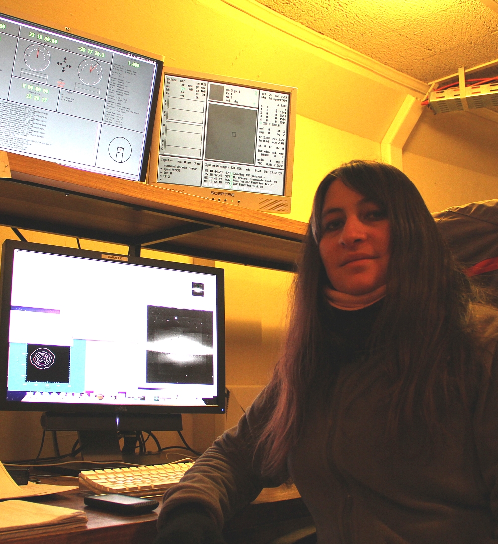 Consuelo del Pilar González ÁvilaLicenciada en Educación, Universidad de La Serena (2007), cursó algunas asignaturas universitarias y capacitaciones en astronomía, matemática y física. Entre 2010 y 2012 formó parte del equipo del E-ELT Site Testing del Observatorio Europeo Austral, operando instrumentación para obtener datos de turbulencia atmosférica en los Cerros Armazones, Ventarrones y Paranal. Fue allá donde se inició en la astrofotografía en el año 2011. En noviembre de 2012 comienza a trabajar como observadora en el Telescopio Swope del Observatorio Las Campanas para el Carnegie Supernova Project II, colaborando también en las labores de reducción de datos ópticos y la sustracción de fondo galáctico de supernovas. En la actualidad su cargo es de Operadora del Telescopio du Pont del Observatorio Las Campanas. Ocupa su agenda con actividades que se mueven entre la astronomía profesional y amateur, la astrofotografía y la música. |